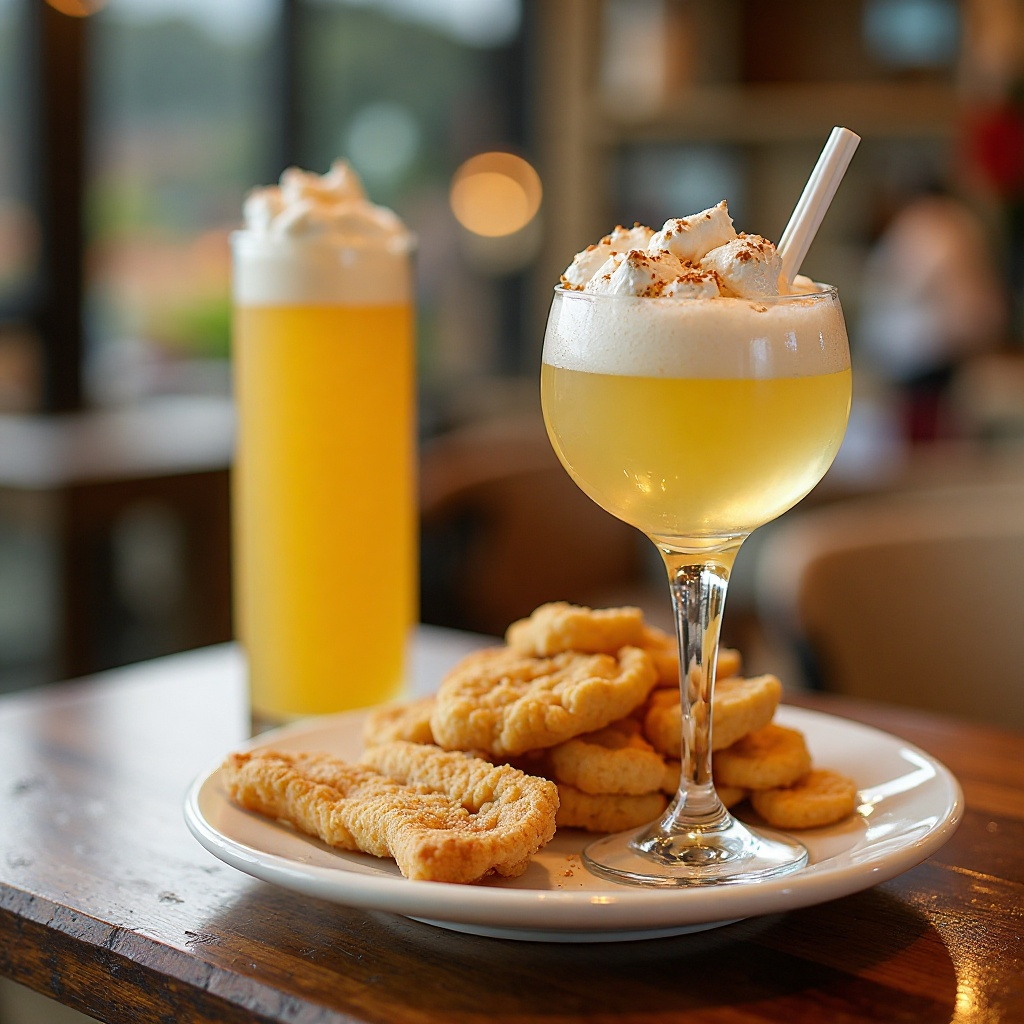 Aunque el pisco sour tiene su origen en Perú, es un favorito en muchos países de América Latina, incluyendo Chile. El pisco, siendo una bebida emblemática de la región, refleja la fusión de tradiciones andinas y culturales europeas. El acompañamiento con pescado frito resalta la cocina costera chilena, donde el mar y sus productos son protagonistas. Esta combinación no solo es gastronómica sino también cultural, uniendo sabores y tradiciones en un solo trago.