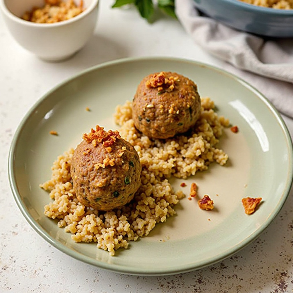 Los frikadeller son un alimento icónico de Dinamarca, tradicionalmente hechos con carne de cerdo o vacuno. Esta variante con arroz integral muestra la tendencia hacia platos más saludables y conscientes del medio ambiente sin perder el sabor característico de los frikadeller. En países como Dinamarca, la cocina se enriquece con influencias que promueven un estilo de vida más sostenible, reflejando preocupaciones modernas sobre la salud y el planeta.