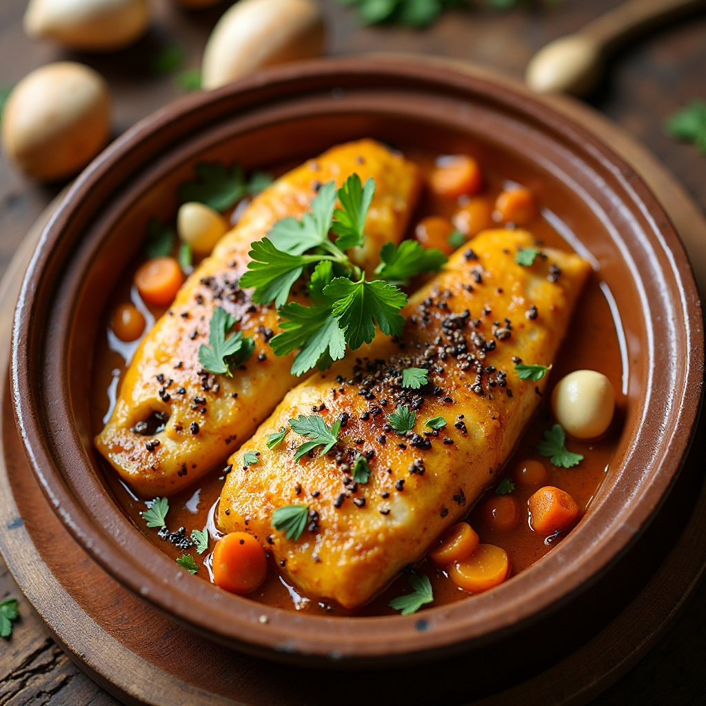 El Tagine es una emblemática forma de cocinar en Marruecos que origina platos ricos y aromáticos. Esta receta adaptada para Alhucemas, una ciudad costera y comercial, incorpora pescado fresco como protagonista, combinado con ingredientes típicos marroquíes, creando un sabor auténtico y lleno de tradición.
