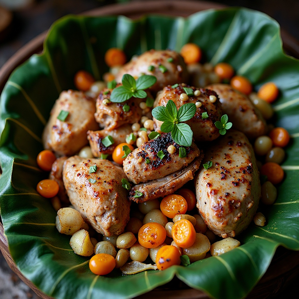 La cocina en lovo utiliza ingredientes frescos y naturales, como la carne de cerdo y las patatas, lo que ofrece un perfil nutricional equilibrado. Sin embargo, es importante asegurarse de que la carne esté bien cocida para evitar riesgos de seguridad alimentaria. El aceite de coco utilizado añade beneficios para la salud, pero se debe usar con moderación debido a su alto contenido de grasas saturadas.
