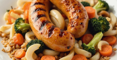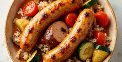Receta de Salchichas de Lunenburg al Horno con Champiñones y Arroz Integral