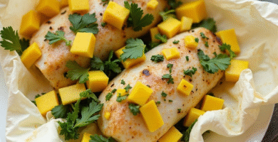 Receta de Pescado al Papillote con Salsa de Mango de Islamorada, Florida