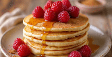 Receta de Pancakes de Maple Syrup con Frambuesas y Canela