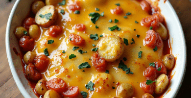 Receta de Queso Manchego al Horno con Papas en Mantequilla y Salsa Romesco para Ciudad Bolívar