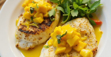Receta de Pescado a la Plancha con Salsa de Mango de Las Islas del Rosario, Colombia