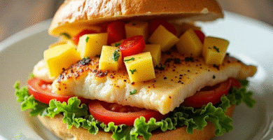 Receta de Pom para Nieuw_Nickerie: Sándwich de Pescado con Frutas Tropicales