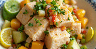 Receta de Ceviche de Camarones con Pisco Sour, inspirado en Santa Cruz Cabrália, Brasil