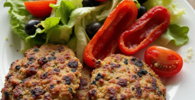 Receta de Pljeskavica con Pimiento Grill y Ensalada Fresca al estilo de Dubrovnik, Bosnia y Herzegovina