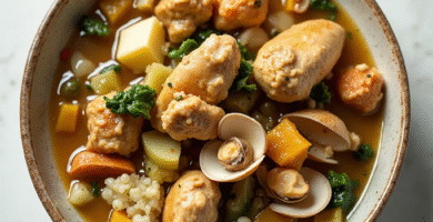 Receta de Cock-a-Leekie con Almejas Frescas del Norte de Escocia