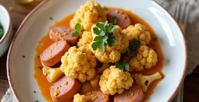Receta de Kranjska klobasa con Coliflor en Salsa Rosa de Celje, Eslovenia