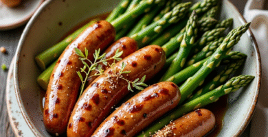 Receta de Salchichas de Cerdo al Vino de Maribor con Espárragos