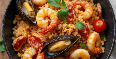 Receta de Paella de Mariscos con Vino de Trás-os-Montes