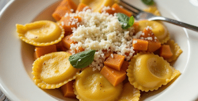 Receta de Tortelli di Zucca al Forno con Salsa de Queso Asiago