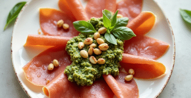 Receta de Carpaccio de Prosciutto Montenegrino con Pesto al Ajillo