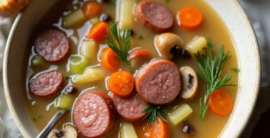 Receta de Sopas Polacas con Kielbasa y Champiñones