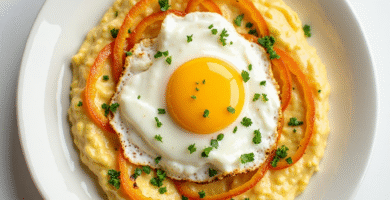 Receta de Huevo Frito con Puré de Remoulade y Pimientos de Hoorn