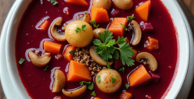Receta de Sopa de Remolacha con Champiñones y Arroz para Jonava, Lituania