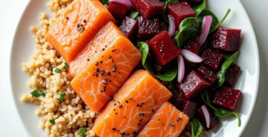 Receta de Salmón Gravad Lax con Ensalada de Remolacha y Arroz Pilaf