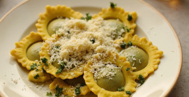 Receta de Raviolis de Calabaza con Pesto y Queso Asiago para Brescia, Italia