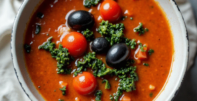 Receta de Salmorejo de Algas Marinas con Espinacas y Aceitunas de Burela, España