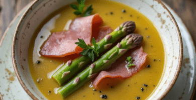 Receta de Sopa de Trufas de Aragón con Espárragos y Jamón de Jamón
