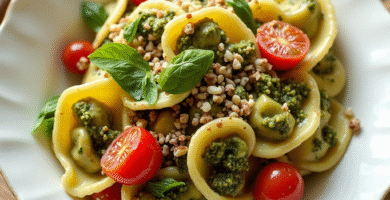Receta de Ravioli con Pesto alla Genovese y Tomate Cherry
