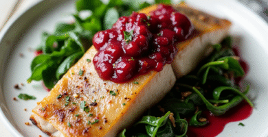 Receta de Trucha de los Alpes con Salsa de Remolacha y Espinacas