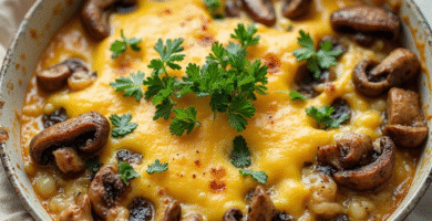 Receta de Queso Fundido con Champiñones y Cebolla de las Hébridas
