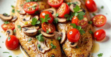 Receta de Trucha de Río Sort en Salsa de Tomates Cherry y Champiñones