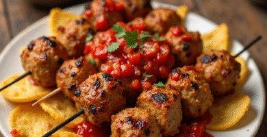 Receta de Pinchos Morunos con Patatas Bravas
