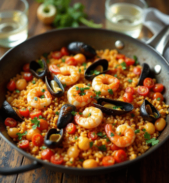 Receta de Paella de Sobrasada con Mariscos de San Rafael de Sa Creu, España