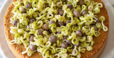 Receta de Tarta de Santiago con un toque Gallego: Almejas y Brotes de Cebolla