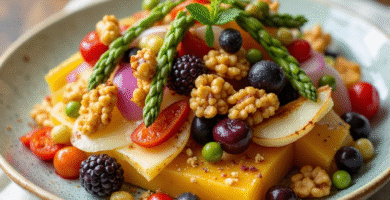 Receta de Queso Idiazabal Crocante con Ensalada de Frutas del Bosque del Parque Natural de Gorbeia