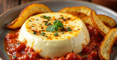 Receta de Queso Fundido de Muskiz con Patatas Bravas