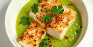 Receta de Bacalao al Pil-Pil con Puré de Guisantes para Mutriku, España