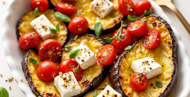 Receta de Queso de Cabra al Horno con Berenjenas y Tomates Cherry
