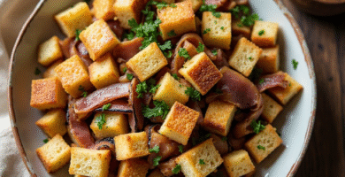 Receta de Migas de Pastor con Jamón Ibérico y Berenjena para Roncal, España