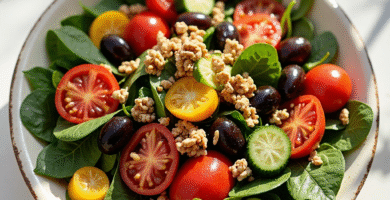 Receta de Ensalada Mediterránea Fresca con Ingredientes Locales de Cala Fonts, España