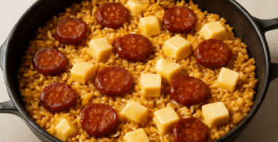 Receta de Arroz con Queso Manchego y Chorizo para Toledo, España