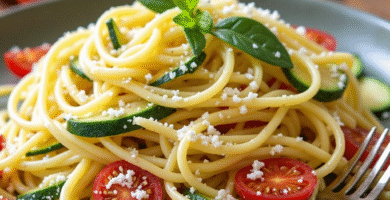 Receta de Spaghetti al Caciocavallo con Calabacín y Tomates Cherry
