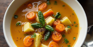 Receta de «Sopa de Verduras con Vinos de Ribera del Duero» para acompañar el aperitivo