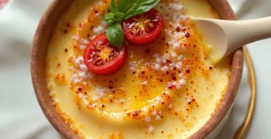 Receta de Crema Catalana con Tostadas de Tomate y Ají