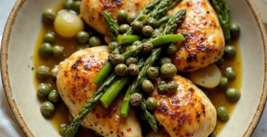 Receta de «Pollo al Vino de Toro con Alcaparras y Espárragos» de Zamora, España