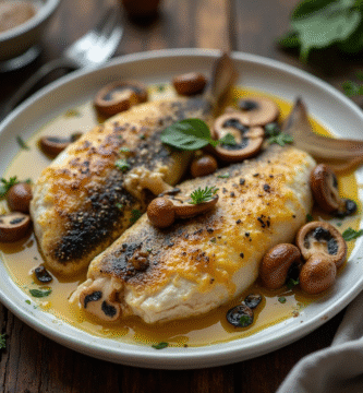 Receta de Pescado al Forno con Salsa de Espárragos y Champiñones