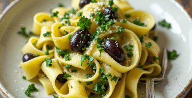 Receta de Tagliatelle al Pesto con Aceitunas Oliva Ascolana para San Benedetto del Tronto, Italia