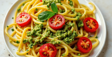 Receta de Pasta Casera con Pesto y Tomates Frescos de Domagnano, Italia