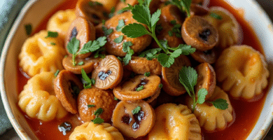 Receta de Sauté de Varenyky con Champiñones y Salsa de Tomate para Zaporizhia, Ucrania