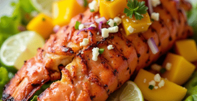 Receta de Langosta a la Parrilla con Ensalada Fresca de Mango y Jícama