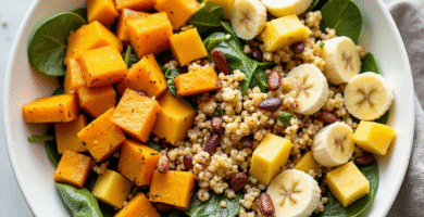 Receta de Calabaza Asada con Quinoa y Ensalada de Frutas Tropicales