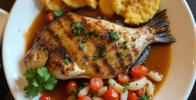 Receta de Pescado al Grill con Tostones de Yuca para San Juan del Sur, Nicaragua
